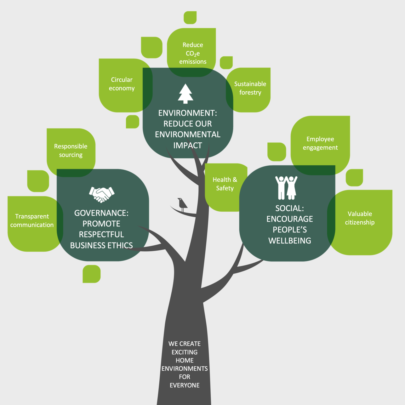 Our products are primarily made of wood – a renewable source with a long lifespan and of high quality. This means we care about sustainability and the world’s resources. Our value chain, risk analyses and product lifecycle analyses tell us what impact we make, and where our possibilities to improve lie. We have a clear sustainability strategy that aligns with four of UN’s goals for sustainable development, and we strive for an increased contribution to a sustainable development.